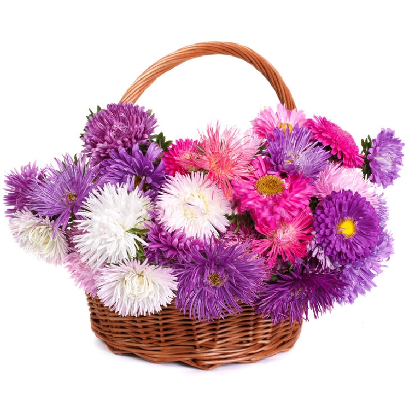 Букет состоит из MIX из 31 астры, корзина, оазис.