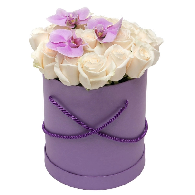 Букет из роз с орхидеями в коробке