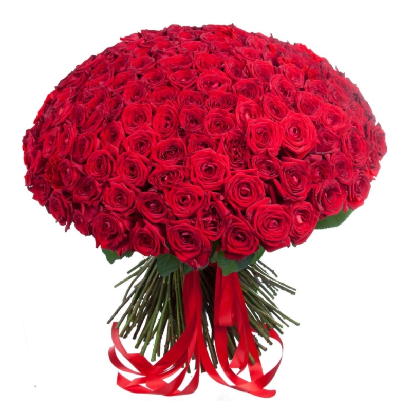 Букет состоит из 201 красная роза, прозрачная упаковка, атласная лента.
